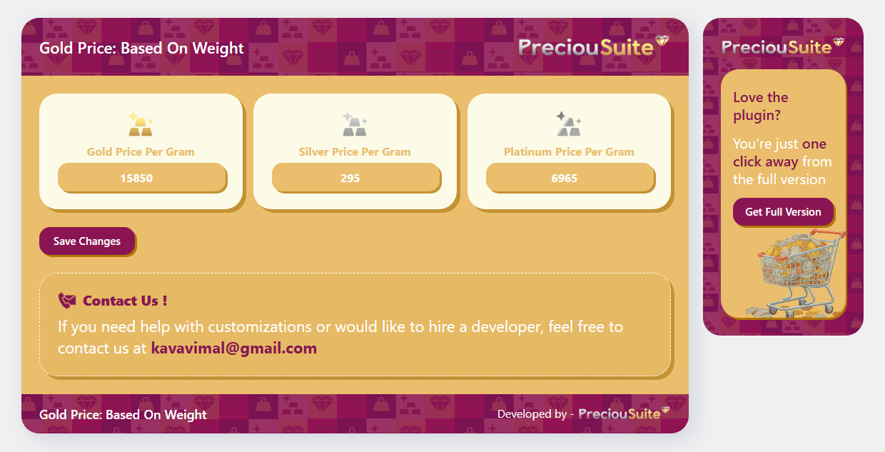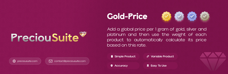 This plugin is ideal for online stores that sell jewelry, bullion, crafts, or any items made from precious metals.