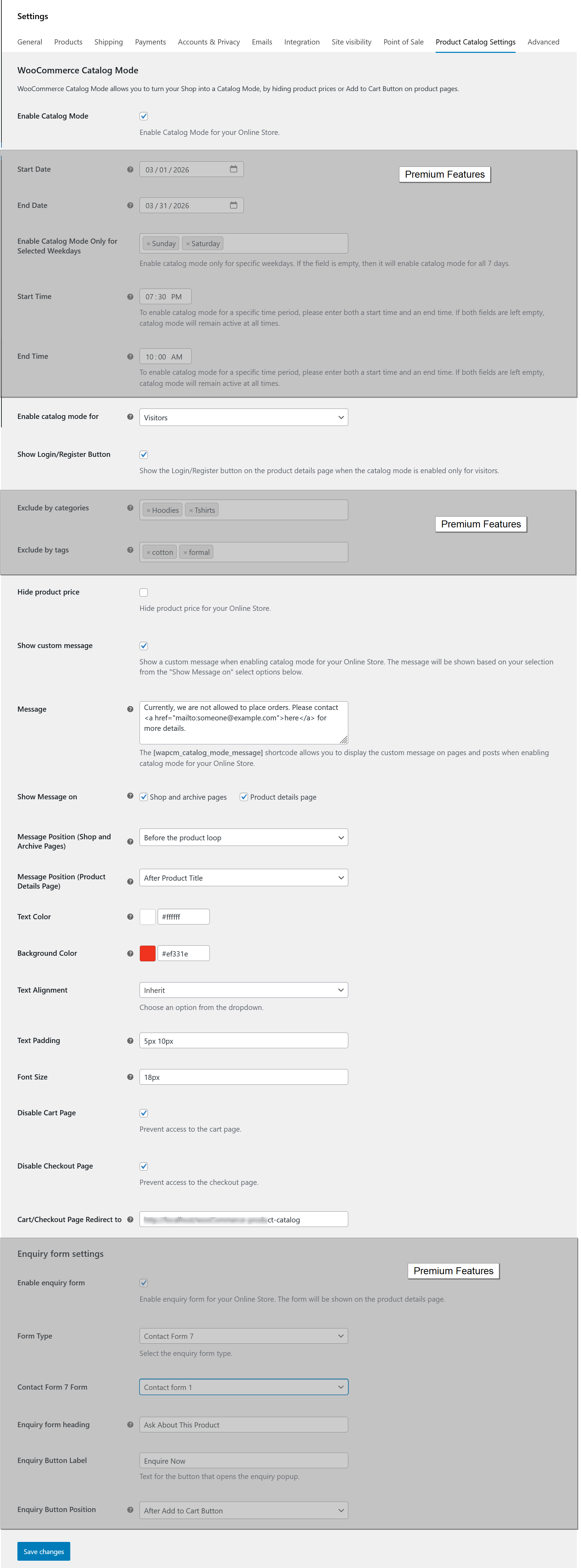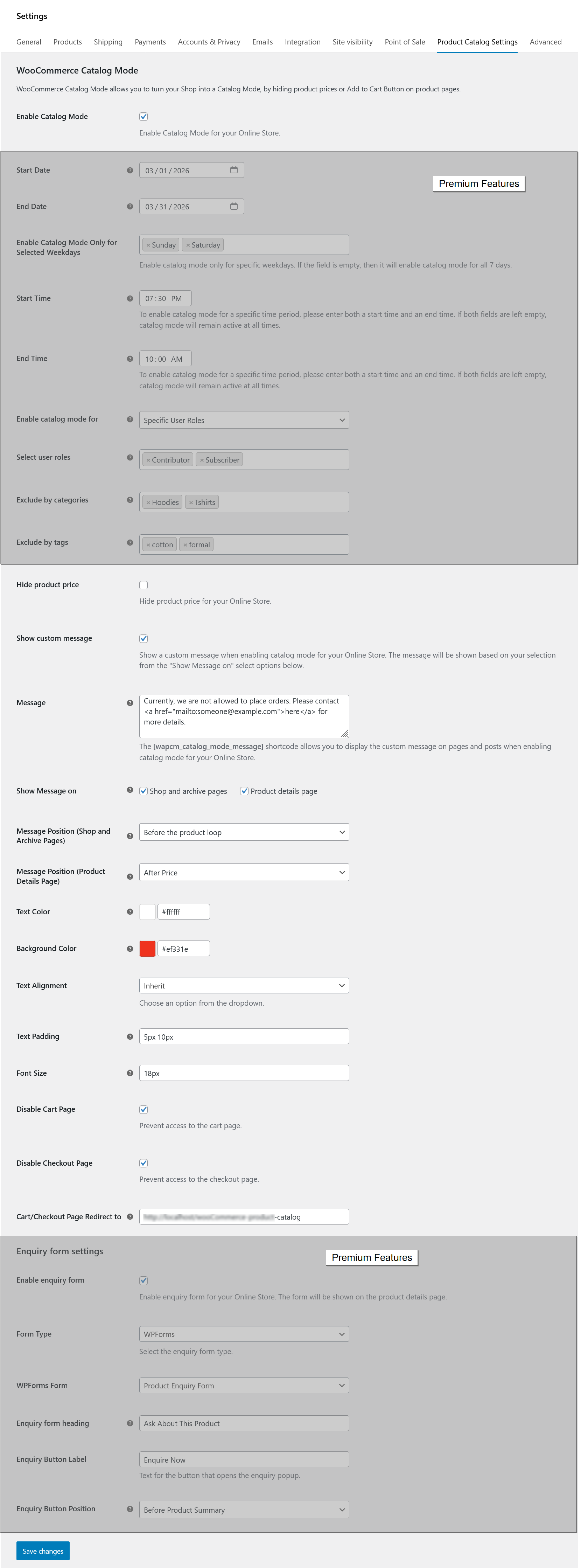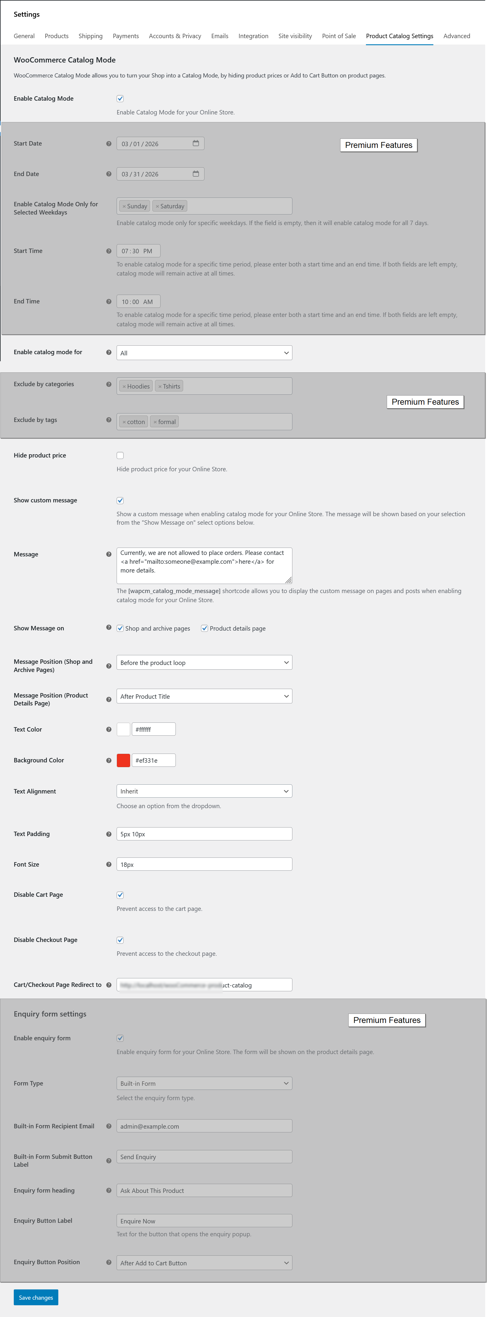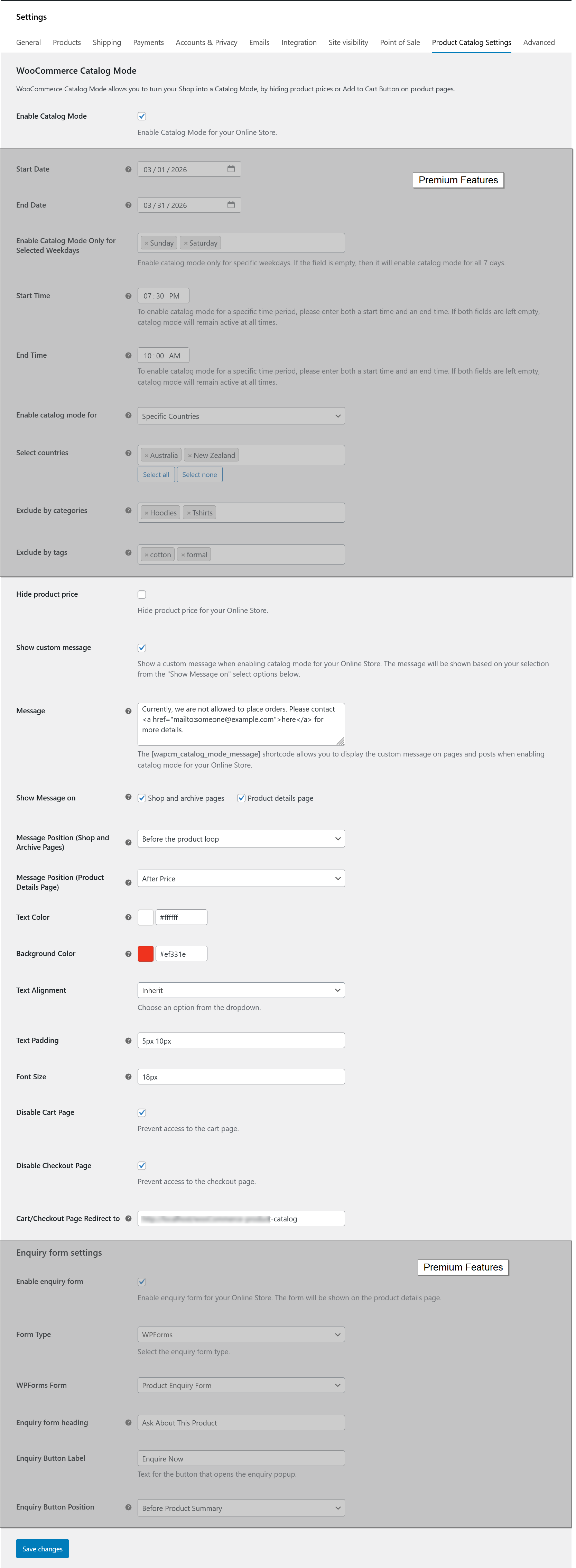 The plugin now includes advanced scheduling controls, allowing store owners to activate catalog mode:
